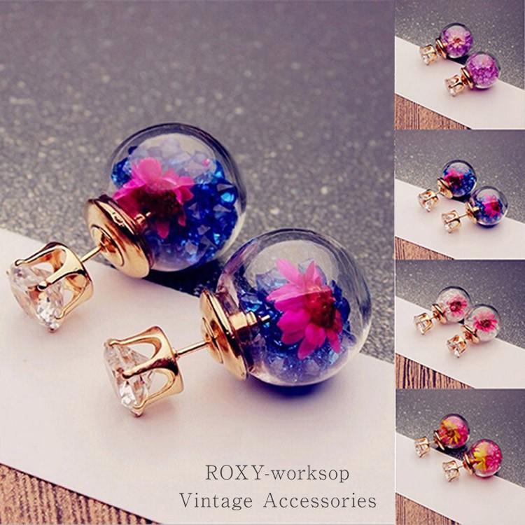 ドライフラワー ピアス 花 フラワー ラインストーン ガラスドーム ビーズ スノードーム 可愛い かわいい レディース アクセサリー 大人 ガーリー クリア ドーム Pia 144 ロキシー工房 通販 Yahoo ショッピング